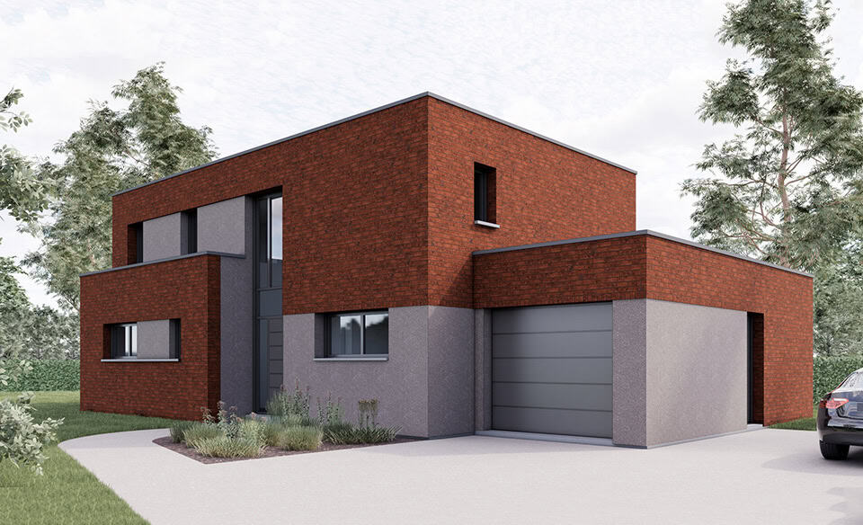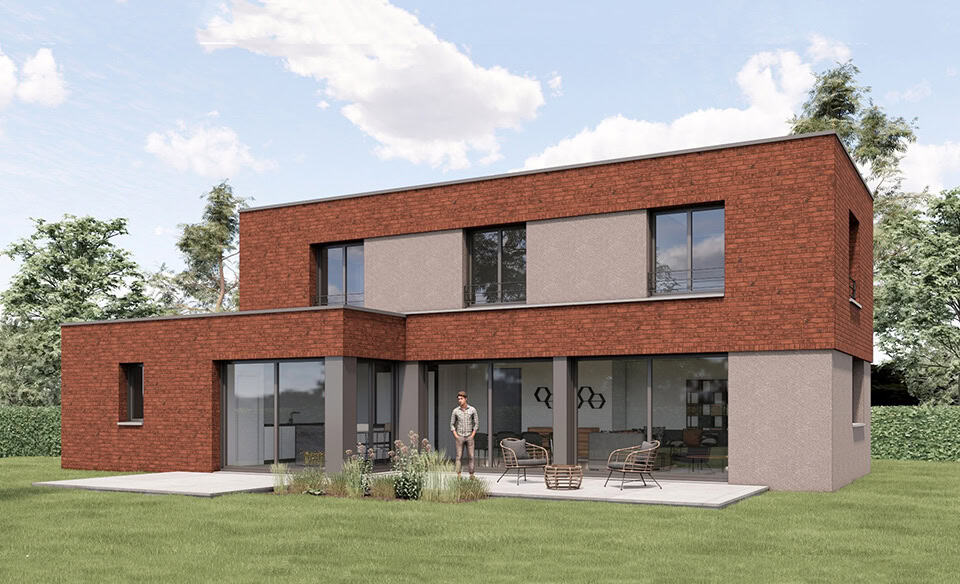 Maison individuelle cubique en brique à Cysoing